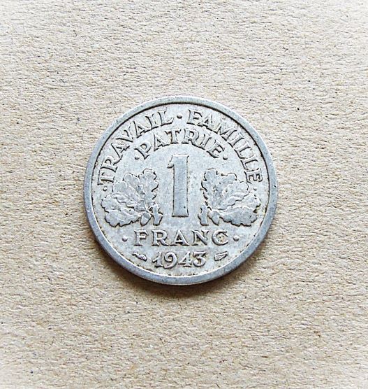 1 Franc 1943 France coin Coin Münzen1 Franc 1943 France coin. Travail Famille Patrie. Price: 1.5 Euro.