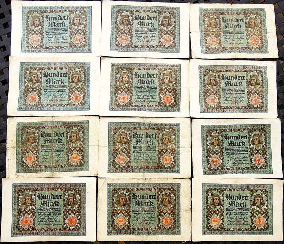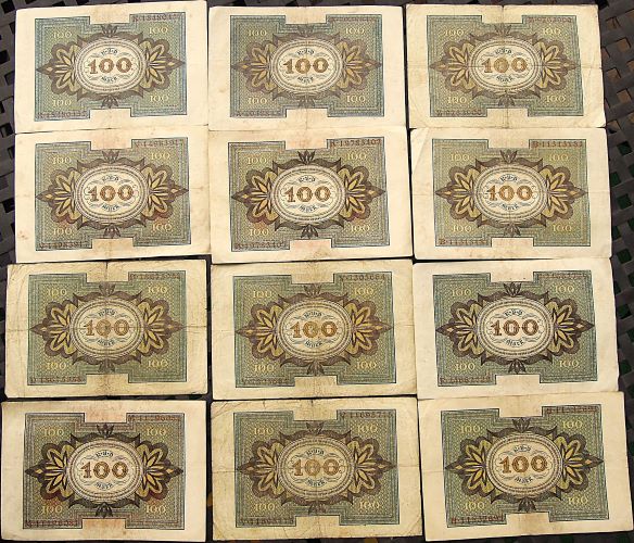 100 Hundert Mark 1920 12 pcs Lot banknote paper money Papiergeld Banknoten Paper money 100 Hundert Mark 1920 12 pcs Lot banknote paper money. Price: 9 Euro.