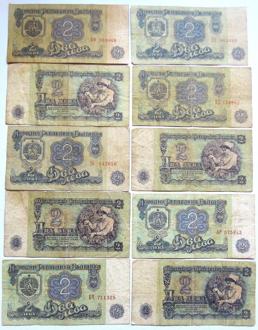 2 Leva Bulgaria 1974 banknote paper money Lot 10 pieces Papiergeld Banknoten Paper money2 Leva Bulgaria 1974 banknote paper money Lot 10 pieces. Priece: 5 Euro