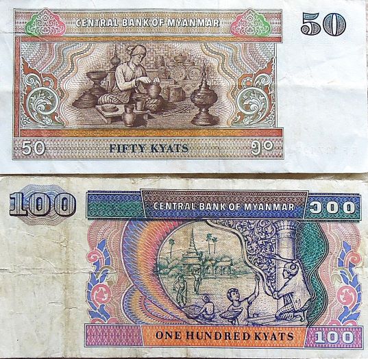 50 100 Kyats Myanmar Burma banknote paper money Papiergeld Banknoten Paper money50 100 Kyats Myanmar Burma banknote paper money. Price: 0.7 Euro/Each.