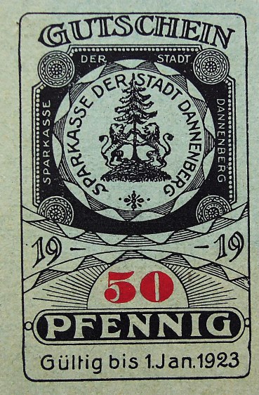 50 Pfennig Gutschein Sparkasse Der Stadt Dannenberg 1919 Notgeld UNC Papiergeld Banknoten Paper money50 Pfennig Gutschein Sparkasse Der Stadt Dannenberg 1919 Notgeld UNC. Price: 1.5 Euro