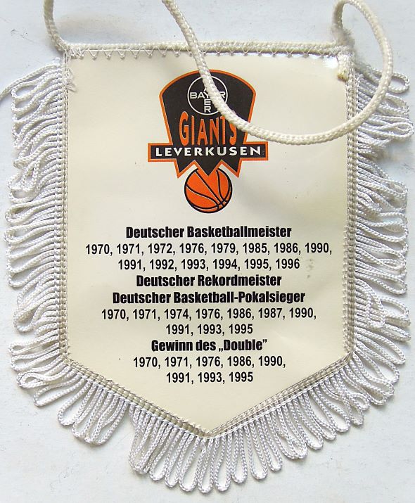 Bayer Giants Leverkusen basketball team flag FlagBayer Giants Leverkusen basketball team flag. Size: 15 x 10 cm. Price: 3 Euro.