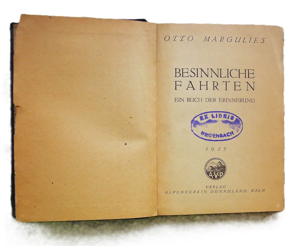Besinnliche Fahrten Ein Buch Der Erinnerung von Otto Margulies 1925 , Verlag Alpenverein Donauland Wien