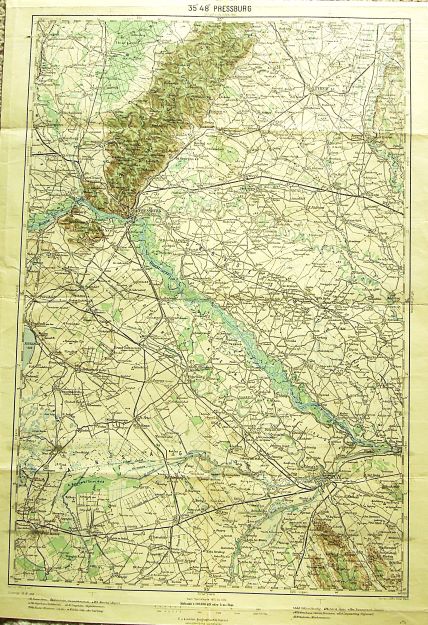 Bratislava Győr Duna Surroundings Slovakia old map 1889 Map Plan LandkarteBratislava Győr Duna Surroundings Slovakia old map 1889. 35 48. K.u.K. Militargeographisches Institut. Mafsstab: 1 : 200.000. Size: 61 x 43 cm. Price: 9 Euro