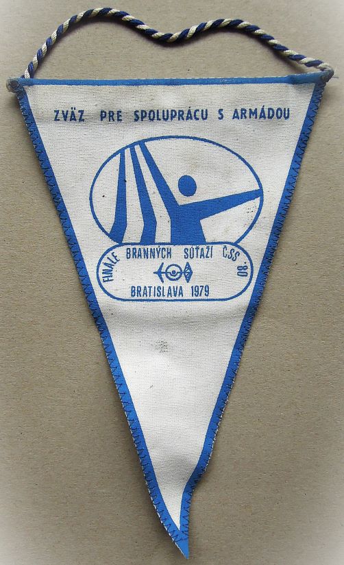 CSS Army sport flag Bratislava 1979 FlagCSS Army sport flag Bratislava 1979. Zväz pre spoluprácu s armádou. Finále Brannych Sútazi CSS 80. Bratislava 1979. Size: 19 x 12.5 cm. Price: 1.5 Euro