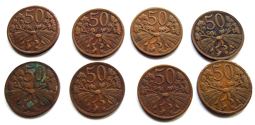 Czechoslovakia 50 Heller 1947-48 coin 8 pcs Lot Coin MünzenCzechoslovakia 50 Heller 1947- 48 coin 8 pcs Lot. Price: 4 Euro.