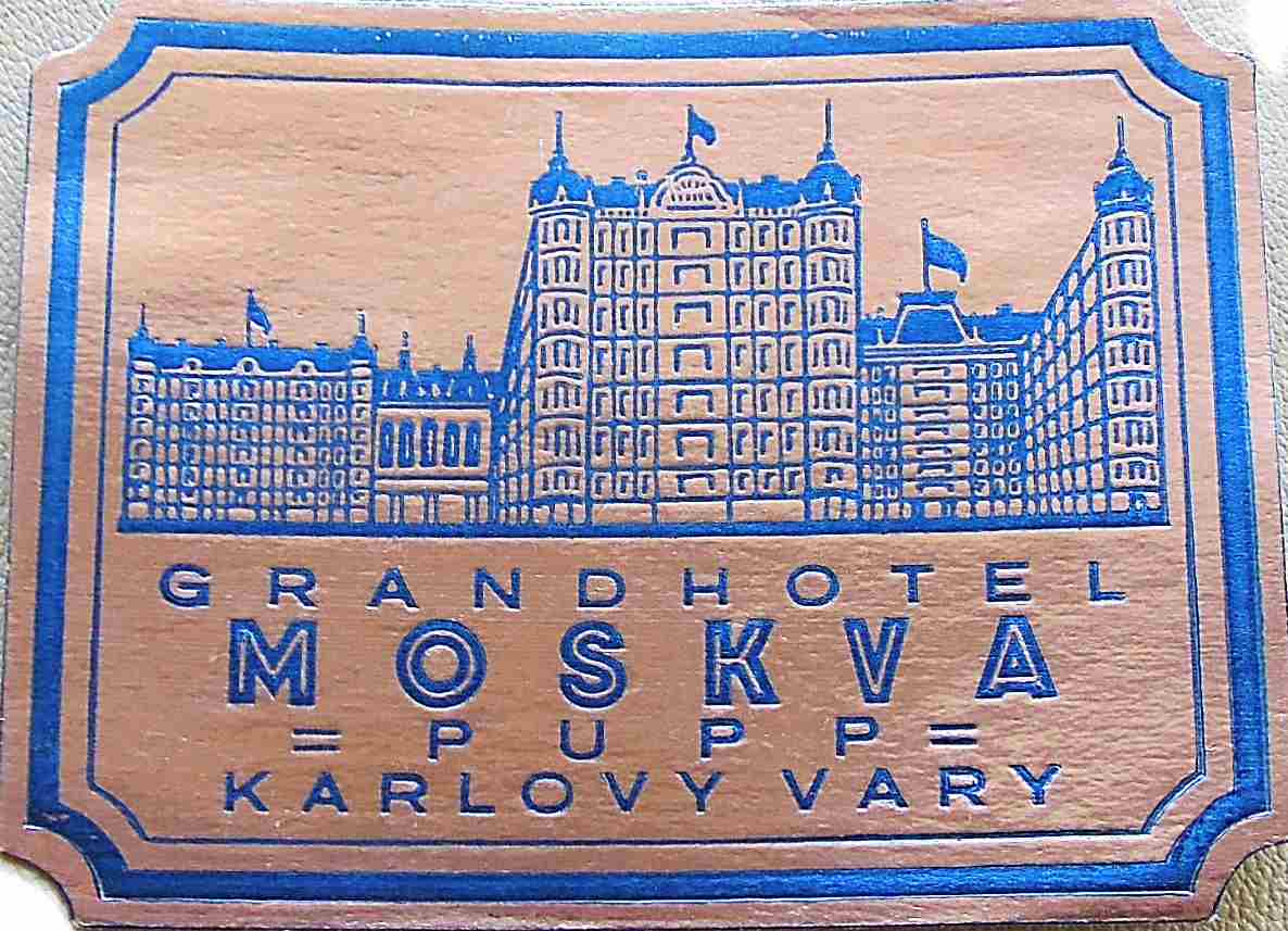 Grand Hotel Moskva Pupp Karlovy Vary vintage retro travel hotel sticker Travel hotel stickerGrand Hotel Moskva Pupp Karlovy Vary vintage retro travel hotel sticker. Size: 10.5 x 8 cm. Price: 1 Euro