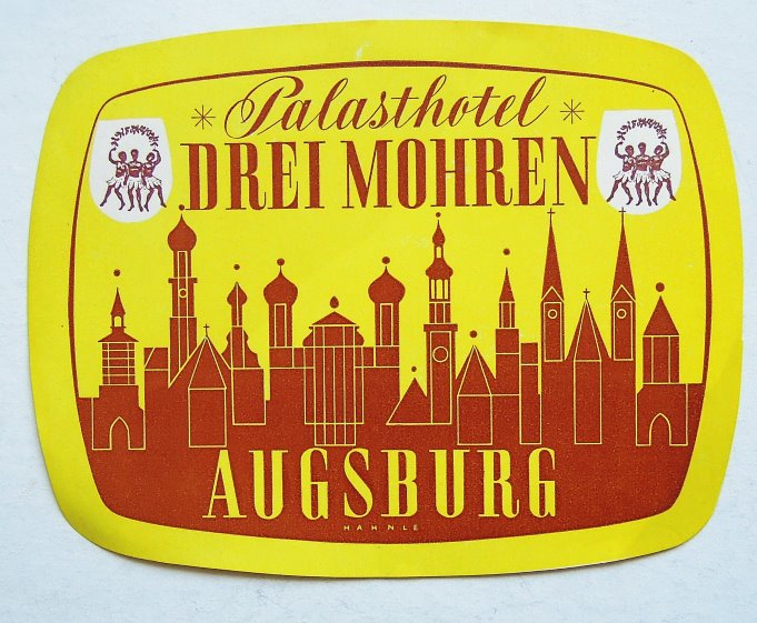 Hotel Drei Mohren Palasthotel Augsburg retro vintage travel hotel sticker HotelHotel Drei Mohren Palasthotel Augsburg retro vintage travel hotel sticker. Size: 13 x 10.5 cm. Price: 1 Euro.