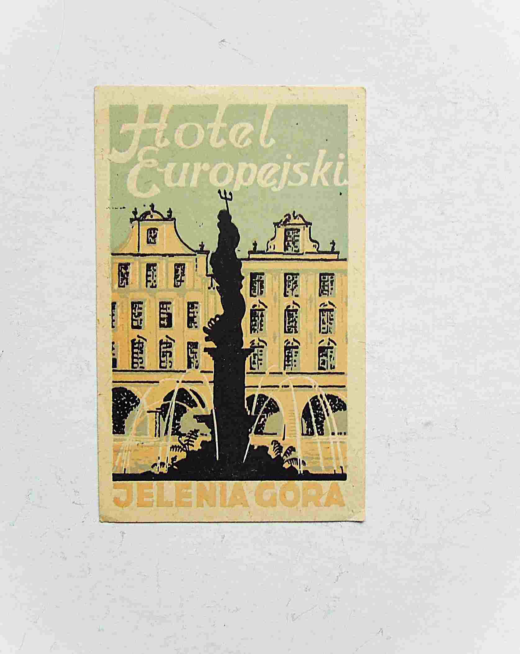 Hotel Europejski Jelenia Gora Poland retro vintage travel hotel sticker HotelHotel Europejski Jelenia Gora Poland retro vintage travel hotel sticker. Size: 10.5 x 6.5 cm. Price: 1 Euro