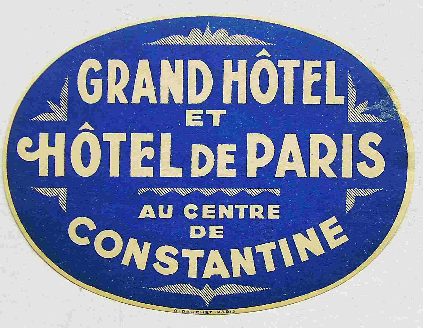 Hotel Grand Et Hotel de Paris Au Centre de Constantine retro vintage travel hotel sticker Map Plan LandkarteHotel Grand Et Hotel de Paris Au Centre de Constantine retro vintage travel hotel sticker. Size: 11.5 x 8 cm. Price: 1.5 Euro.