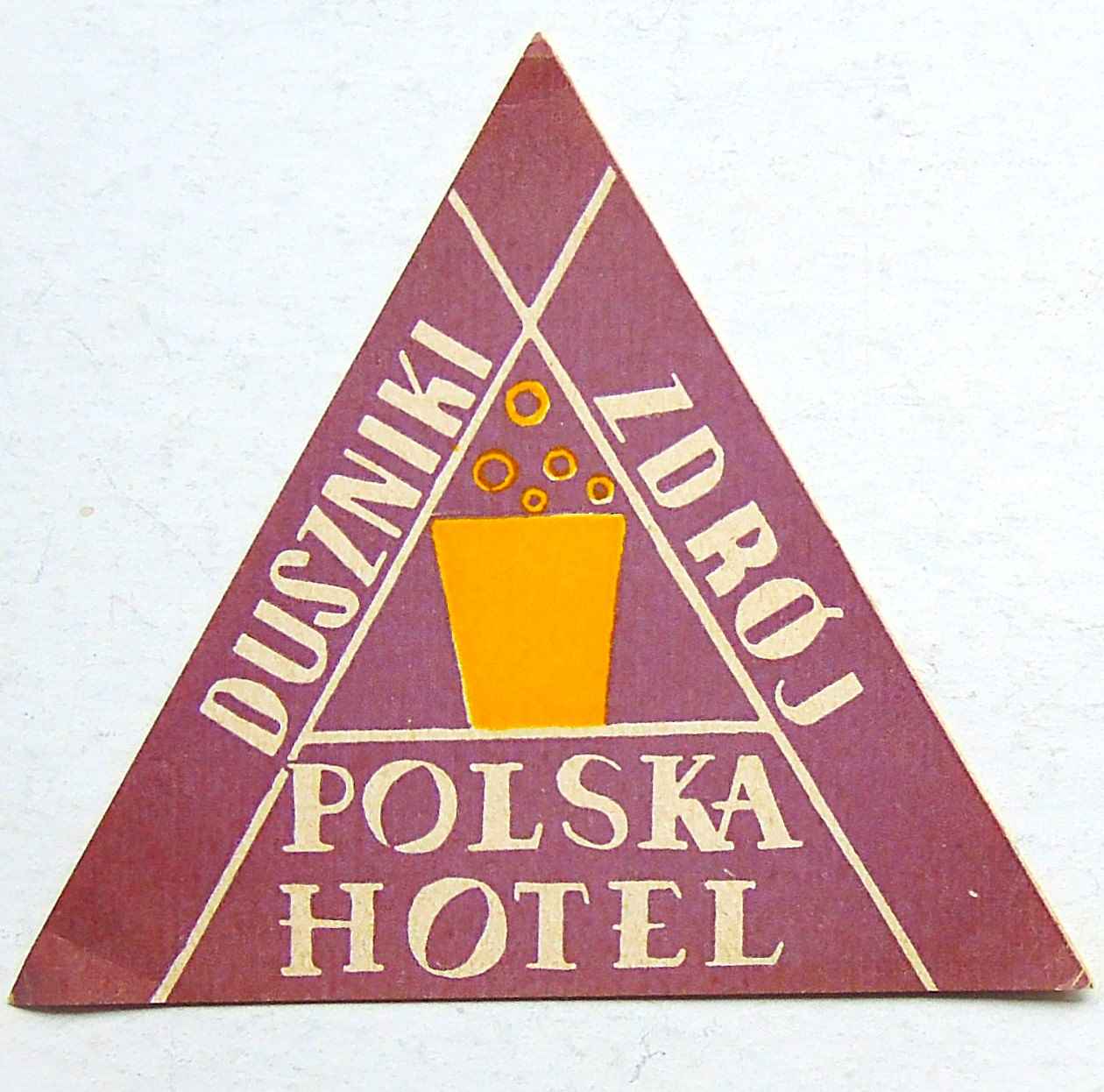 Hotel Polska Dusznniki Zdrój Poland retro vintage travel hotel sticker HotelHotel Polska Dusznniki Zdrój Poland retro vintage travel hotel sticker. Size: 10 x 9 cm. Price: 1 Euro.