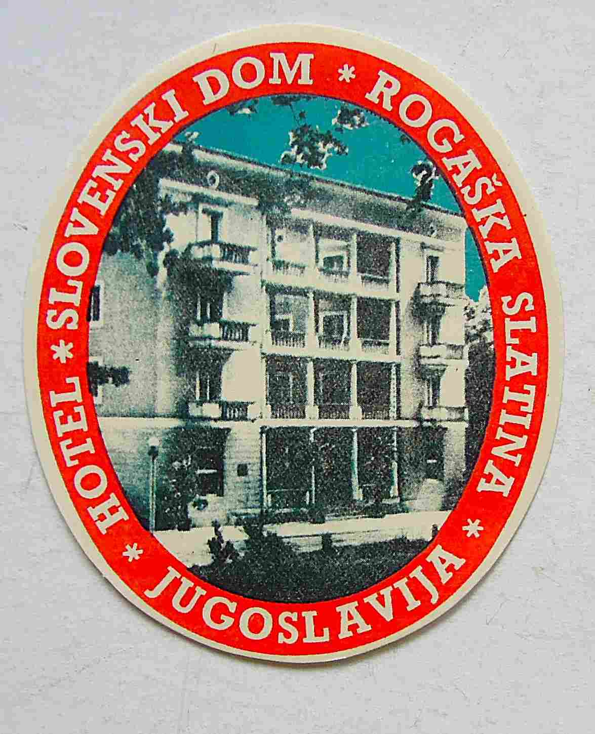 Hotel Slovenski Dom Rogaska Slatina Jugoslavija retro vintage travel hotel sticker HotelHotel Slovenski Dom Rogaska Slatina Jugoslavija retro vintage travel hotel sticker. Size: 9.5 X 8 cm. Price: 1 Euro