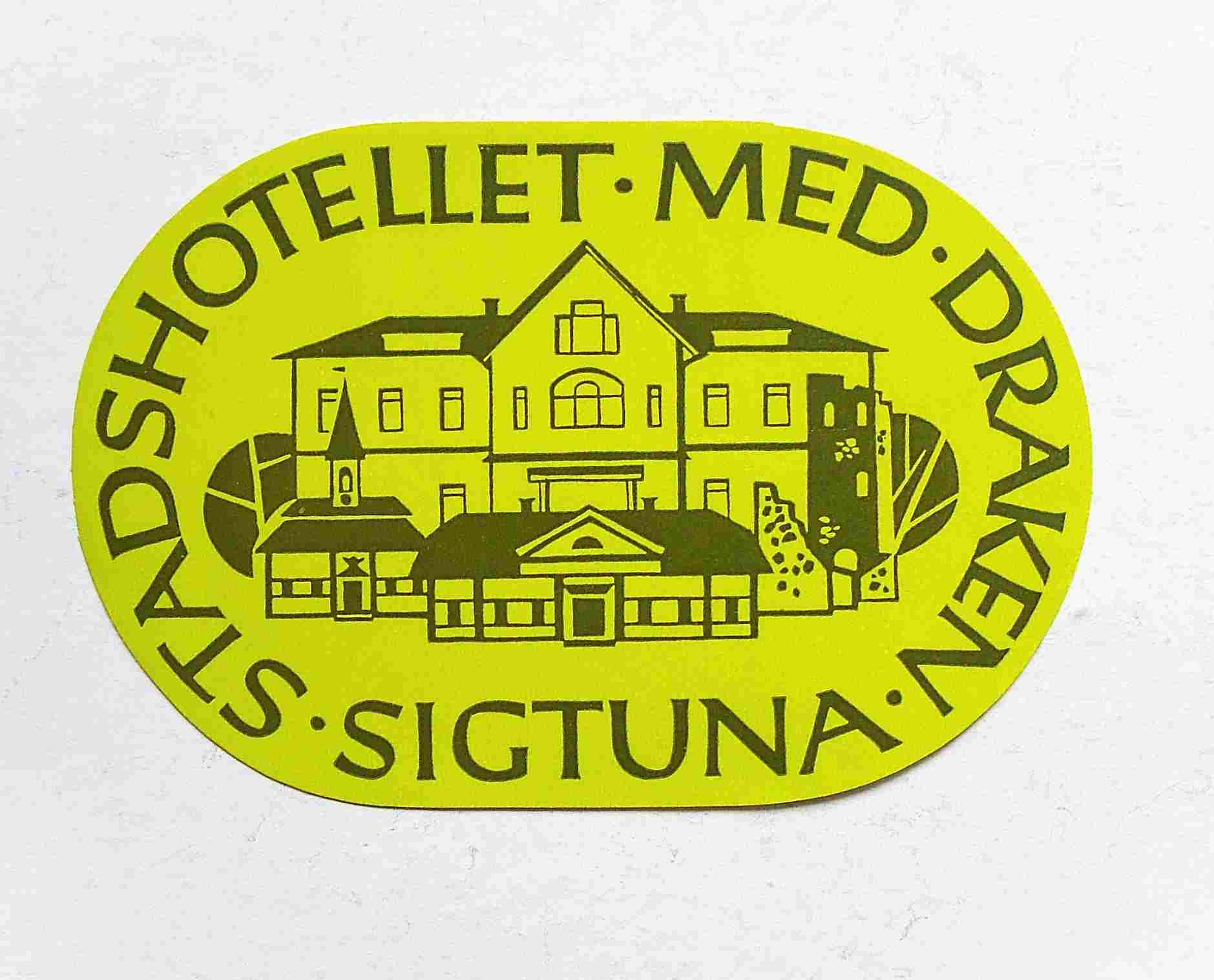 Hotel Stadhotellet Med Draken Sigtuna retro vintage travel hotel sticker HotelHotel Stadhotellet Med Draken Sigtuna retro vintage travel hotel sticker. Size: 12 x 8 cm. Price: 1 Euro