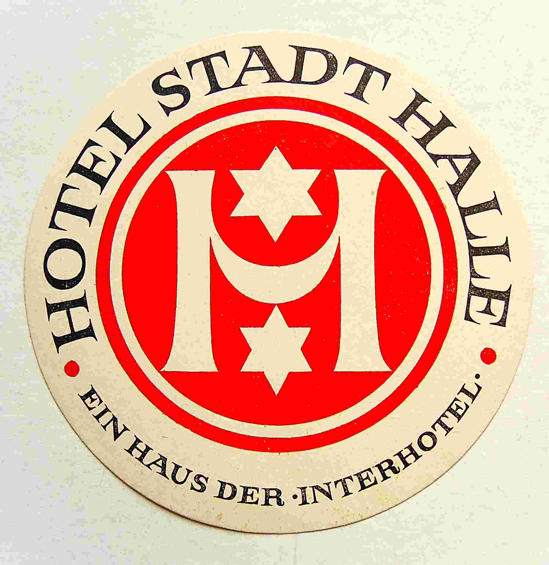 Hotel Stadt Halle Ein Haus Der Interhotel retro vintage travel hotel sticker HotelHotel Stadt Halle Ein Haus Der Interhotel retro vintage travel hotel sticker. Diameter: 10.5 cm. Price: 1 Euro