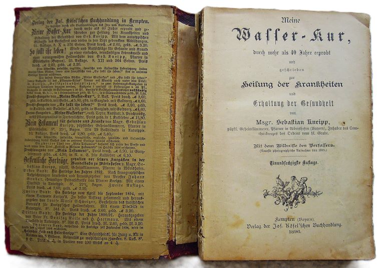 Kneipp Sebastian Meine Wasser- Kur 1896 deutsche Bücher german booksKneipp Sebastian Meine Wasser- Kur 1896. durch mehr als 40 Jahre erprot und gefschrieben Heilung der Krankenheiten. Erhaltung der Gesundheit von Msgr. Sebastian Kneipp. Preis: 19 Euro