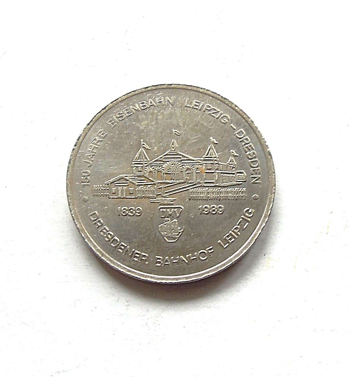 Koenigreich Sachsen Medaille DDR 150 Jahre Eisenbahn Leipzig Dresden GedenkmedailleKoenigreich Sachsen Medaille DDR 150 Jahre Eisenbahn Leipzig Dresden. 1839 – 1989. Dresdener Bahnhof Leipzig. Preis: 4 Euro.