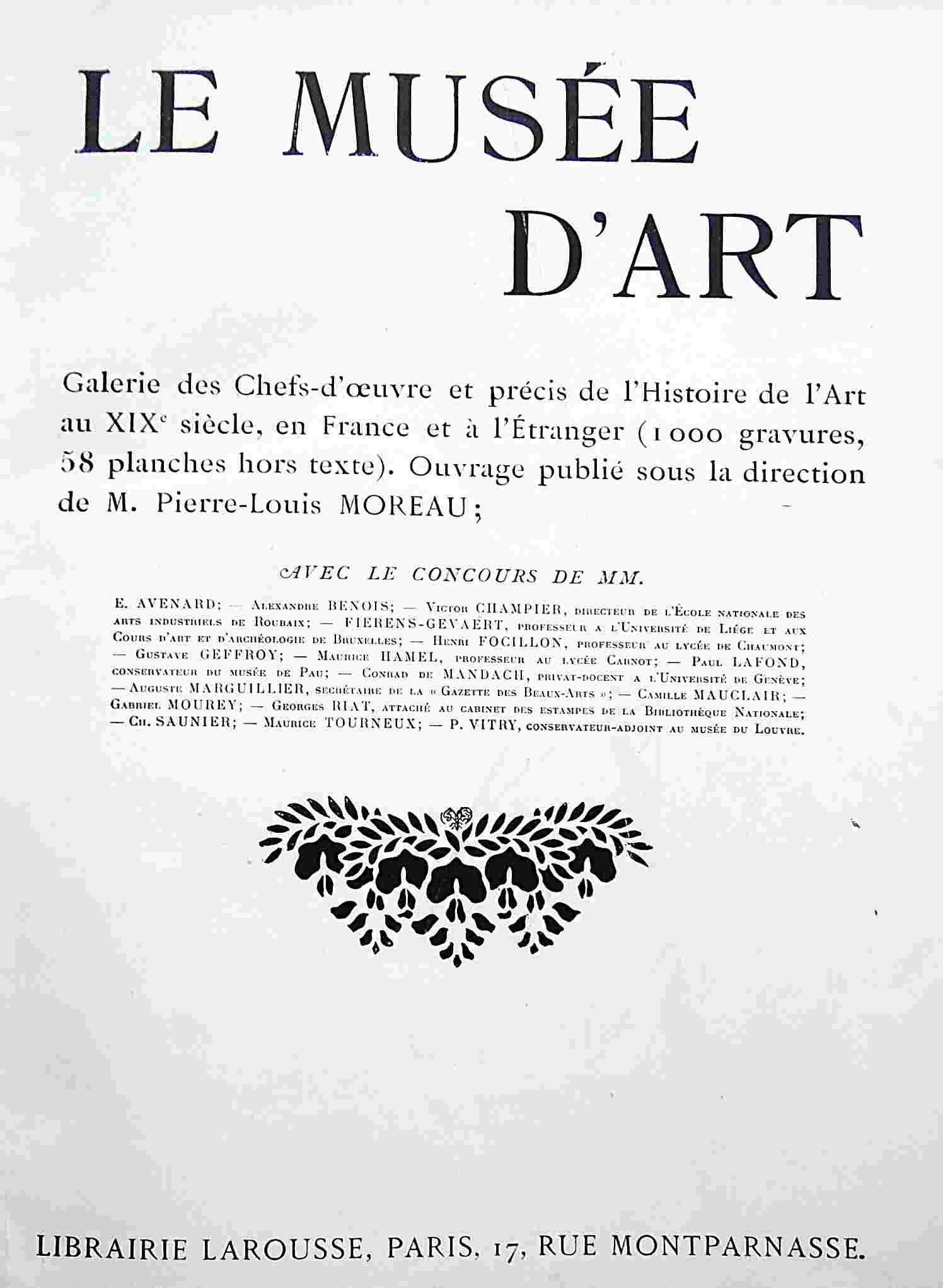 Le Musée D’Art Larousse French bookLe Musée D’Art Histoire Générale de l’Art au XIX Siécle Librairie Larousse Paris418 pages, hard coverPreise/ price 15 Euroc