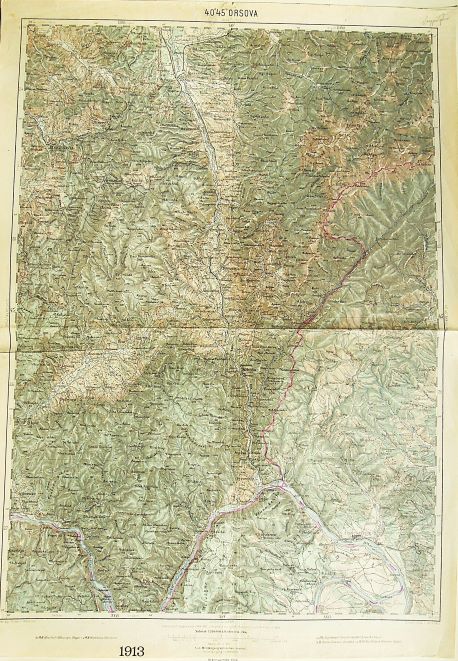 Orsova Turnu Severin Danube Romania old map 1913 Map Plan Landkarte Orsova Turnu Severin Danube Romania old map 1913. 40 45. K.u.K. Militargeorgaphisches Institut. Mafsstab: 1 : 200.000. Size: 62 x 44 cm. Price: 7 Euro.