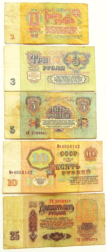 Sovietunion Rubel banknote paper money 5 pcs Lot Papiergeld Banknoten Paper moneySovietunion Rubel banknote paper money 5 pcs Lot. Price: 5 Euro