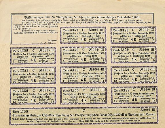 Staatsschuldverschreibung 200 Kronen 1920 Wien Wertpapieren Aktie Pfandbrief Staatsschuldverschreibung 200 Kronen 1920 Wien. Price: 5 Euro.