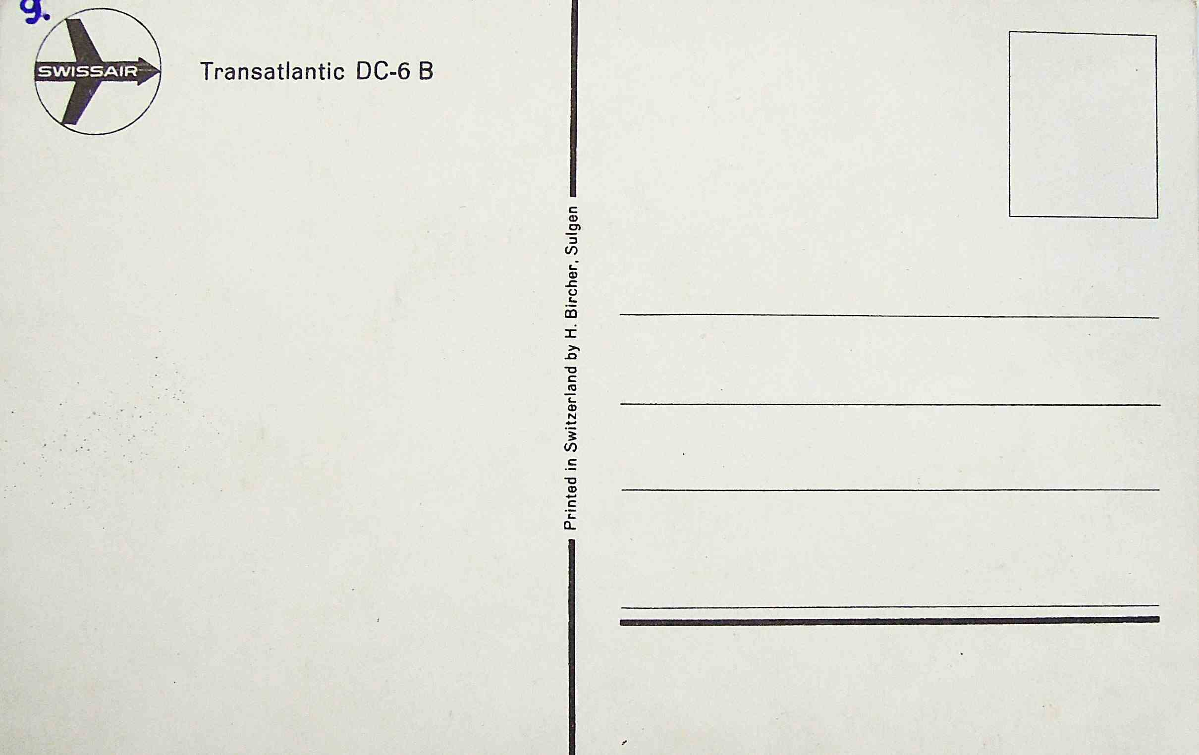 Swissair transatlantic DC-6 B postcard PostcardSwissair transatlantic DC-6 B postcard. Price: 1 Euro.