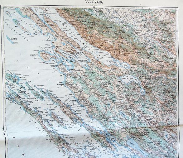 Zara Zadar Kornati Murter Adria Croatia map 1915 Map Plan Landkarte Zara Zadar Kornati Murter Adria Croatia map 1915. K.u.K. Militargeographisches Institut. Mafsstab: 1 : 200.000. Size: 62 x 46 cm. Price: 9 Euro.